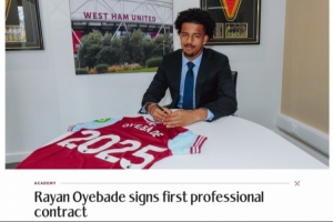 体育资讯4月9日讯 西汉姆官宣,与拉扬-奥耶巴德签下首份职业合同。